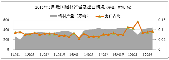 發(fā)稿時(shí)間:2015-07-17鋁材市場保持較快增長。監(jiān)控?cái)?shù)據(jù)顯示,自3月以來,我國鋁材月度產(chǎn)量均保持兩位數(shù)的增長速度,其中5月份全國鋁材產(chǎn)量444萬噸,累計(jì)同比增長10.7%,增幅環(huán)比回落1.6個(gè)百分點(diǎn)。從區(qū)域分布上看,山東、河南以及廣東仍然保持鋁材產(chǎn)量前三的位置,其中廣東5月份鋁材產(chǎn)量49萬噸,全國占比11%,但同比增速較上月回落了6%,降幅收窄0.3個(gè)百分點(diǎn)。