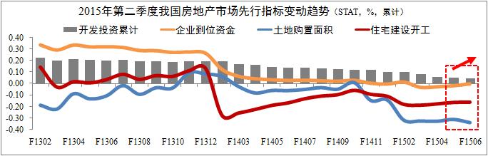 第二季度全國房地產投資開發累計增長4.6%,環比回落0.5個百分點。從三大先行指標變動趨勢上看,導致投資開發為正增長的主要原因是開發商加大了住宅開發建設的資金投入(降幅收窄0.2個百分點),并非進一步加大土地購置面積(同比下降33.8%,降幅擴大2.8個百分點)。統計數據顯示,上半年全國房地產開發市場去庫存趨勢逐步顯現,但是投資市場趨勢總體疲軟。