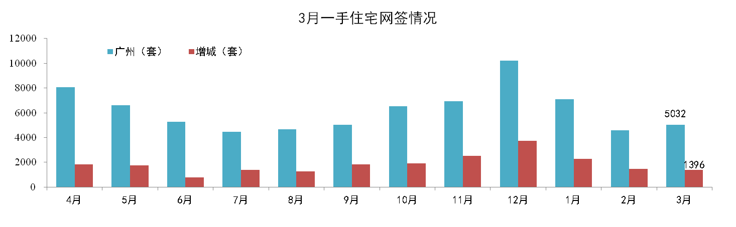 3月,廣州一手住宅網簽量成交4,570套,環比下跌35.76%。其中增城市場3月一手住宅網簽成交1,396套,環比下跌3.8%。