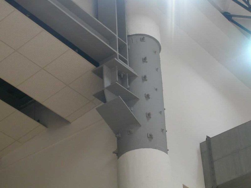 (二)設計要求加固旁柱、柱基及相關結構,增設支承托架的牛腿,加工制作托架(梁);