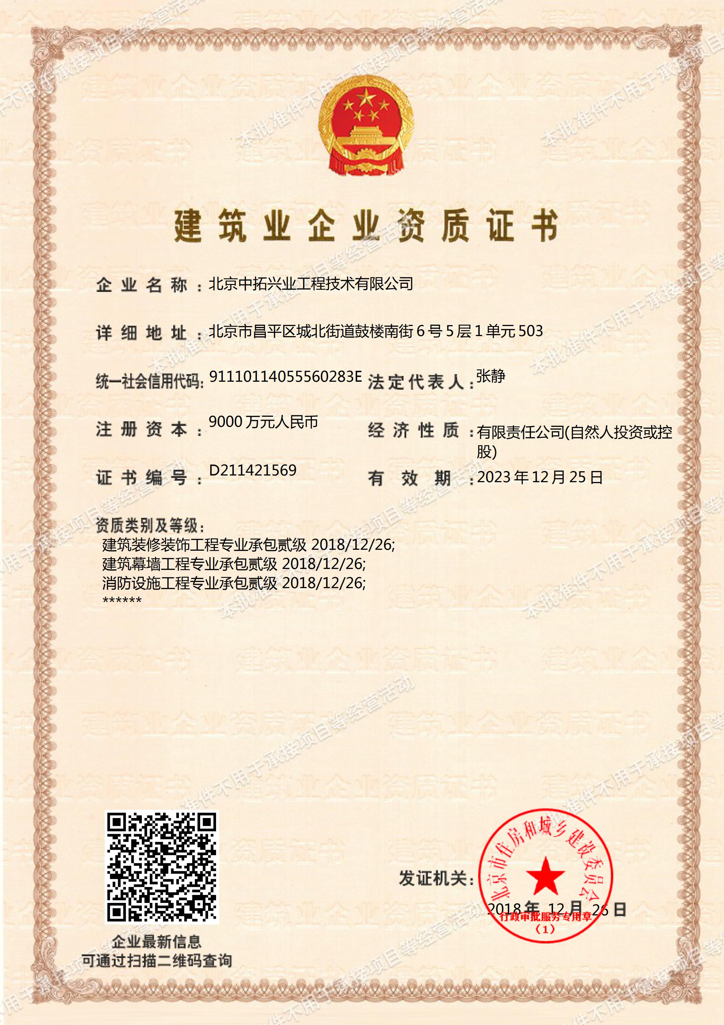 建筑業企業資質證書